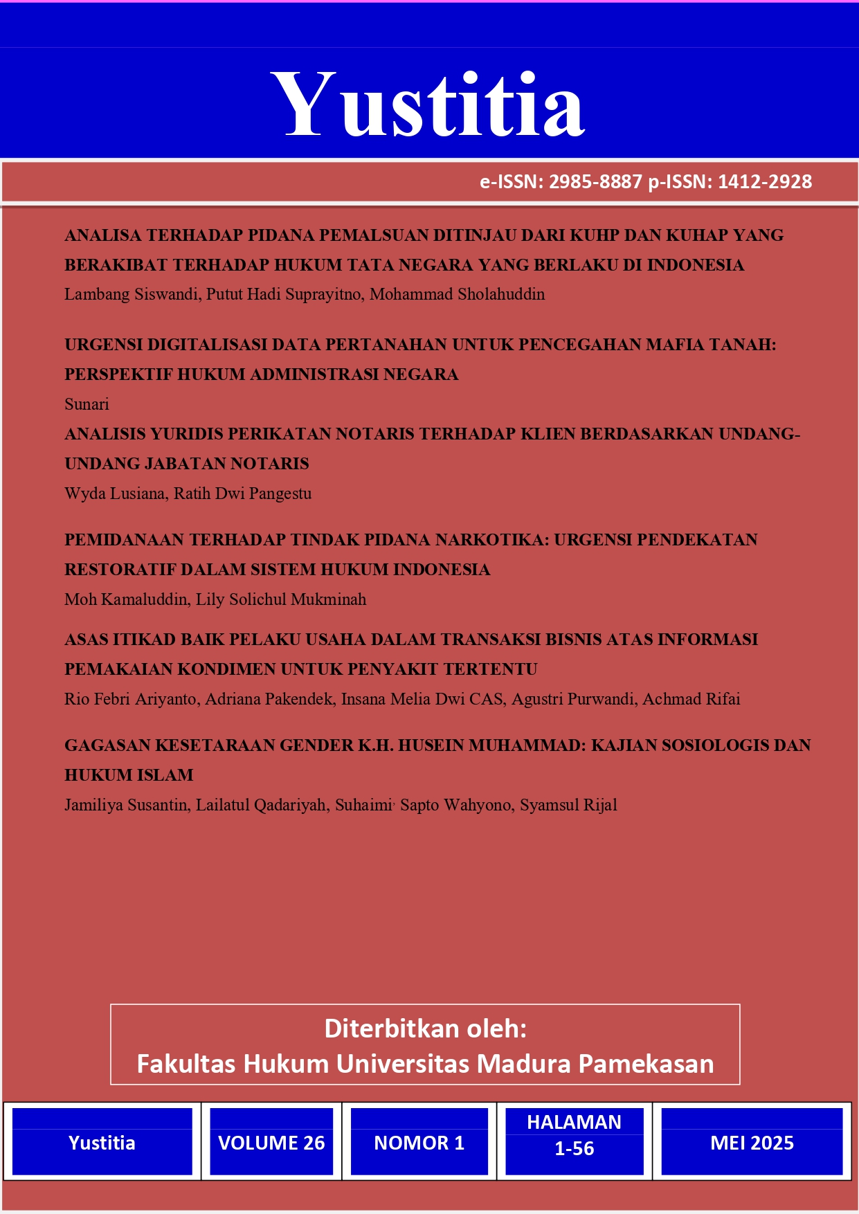 Vol. 25 No. 1 (2024): YUSTITIA